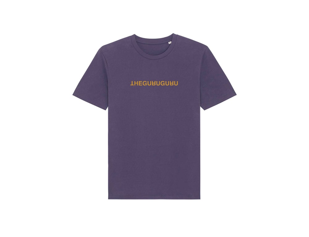 This is an indigo hush t-shirt with an embroidered small ochre logo.